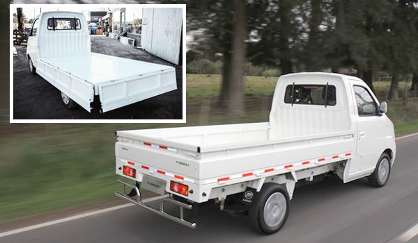 La amplia caja de carga de 2,8 mts. de largo por 1,52 mts. de ancho y los tres laterales rebatilbles, permiten transportar mercaderías voluminosas.